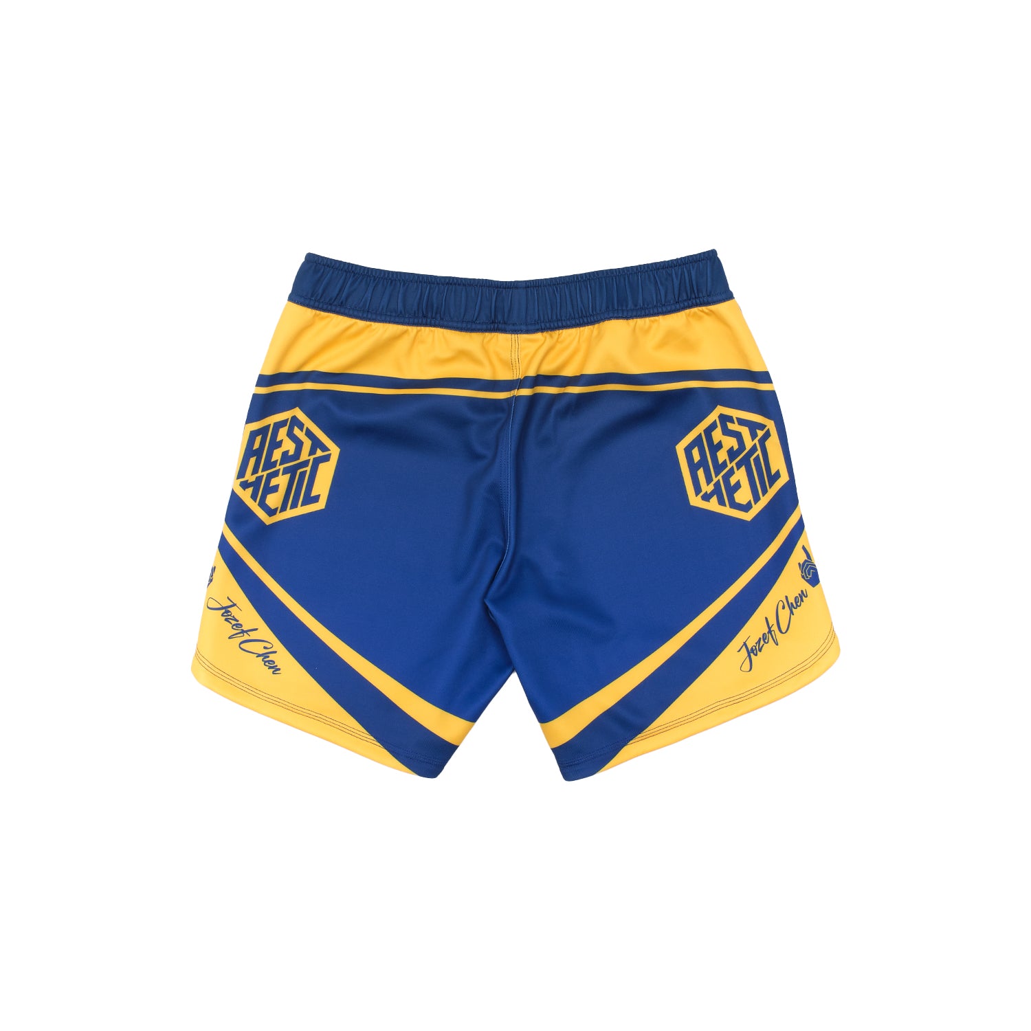 Designed exclusively for Jozef Chen and debuted at Polaris 31: Squads, these shorts feature a subtle navy ombré, with contrasting yellow gold accents.