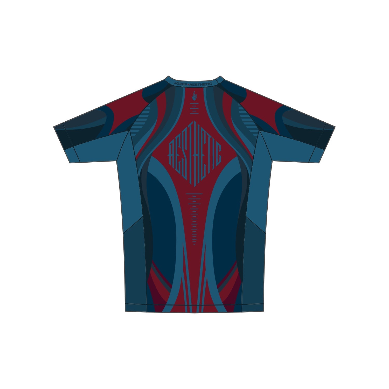 Hand-drawn and digitized with Jozef himself, this no-gi set features an organic, biomechanical-inspired design in prussian blue, deep red and navy tones.